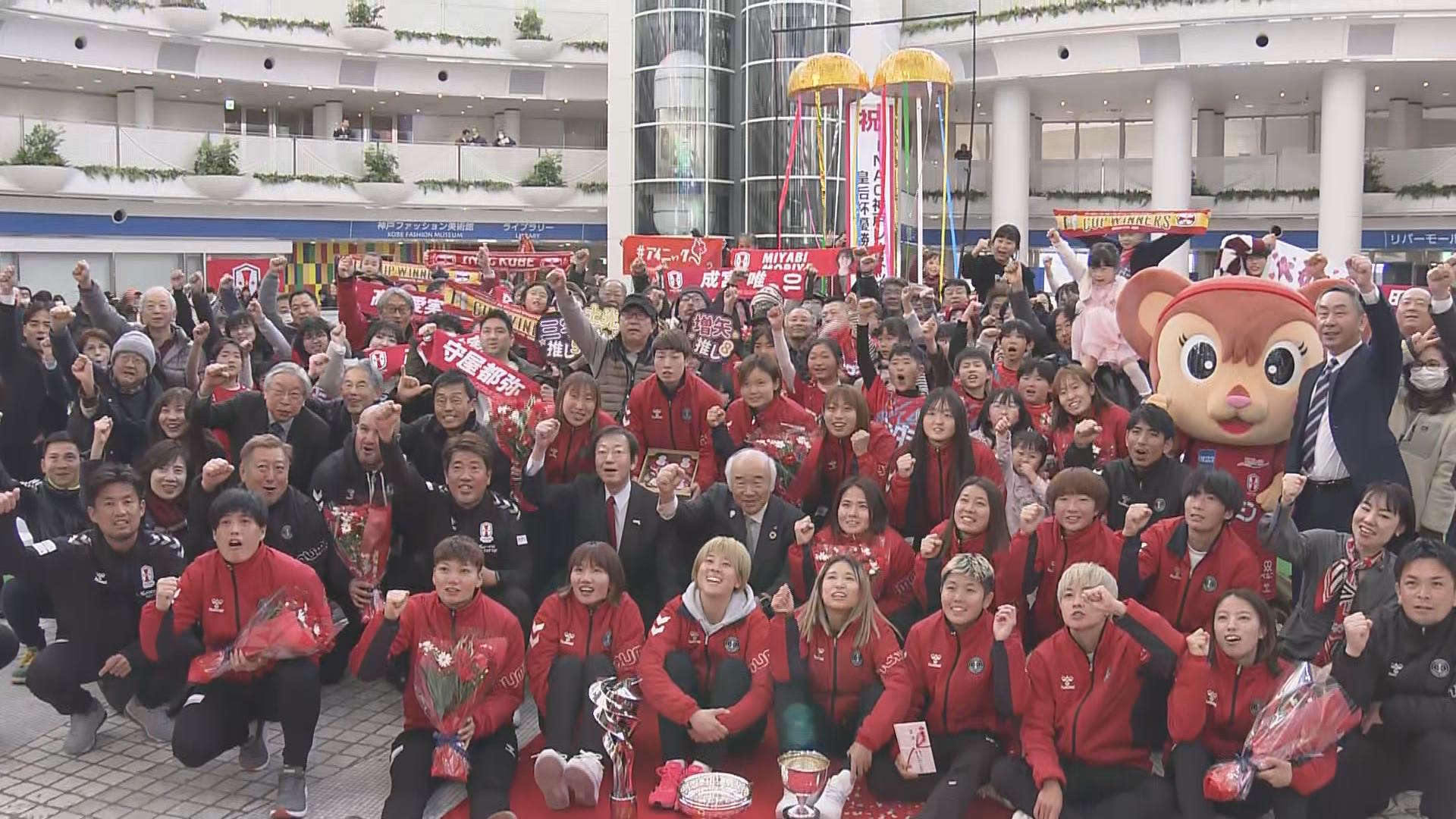 その後、副キャプテンの三宅史織選手らが、3月から再開するサッカー女子のプロリーグ・WEリーグ制覇に向けた意気込みを語りました。