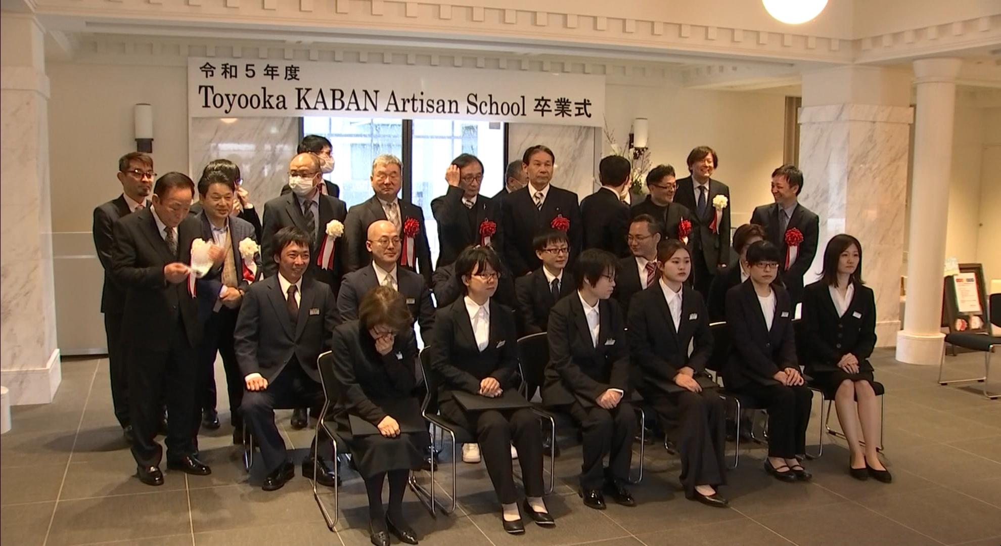 卒業式には、「トヨオカ・カバン・アルチザン・スクール」で1年間のカリキュラムを終えた18歳から60代までの10期生12人が出席しました。