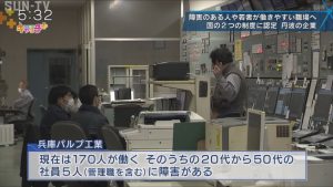 パルプ製造などを行う丹波市の中小企業が障害者の雇用実績や特性への理解、若者の採用などで国から評価され、「優良中小企業」として認定されました。