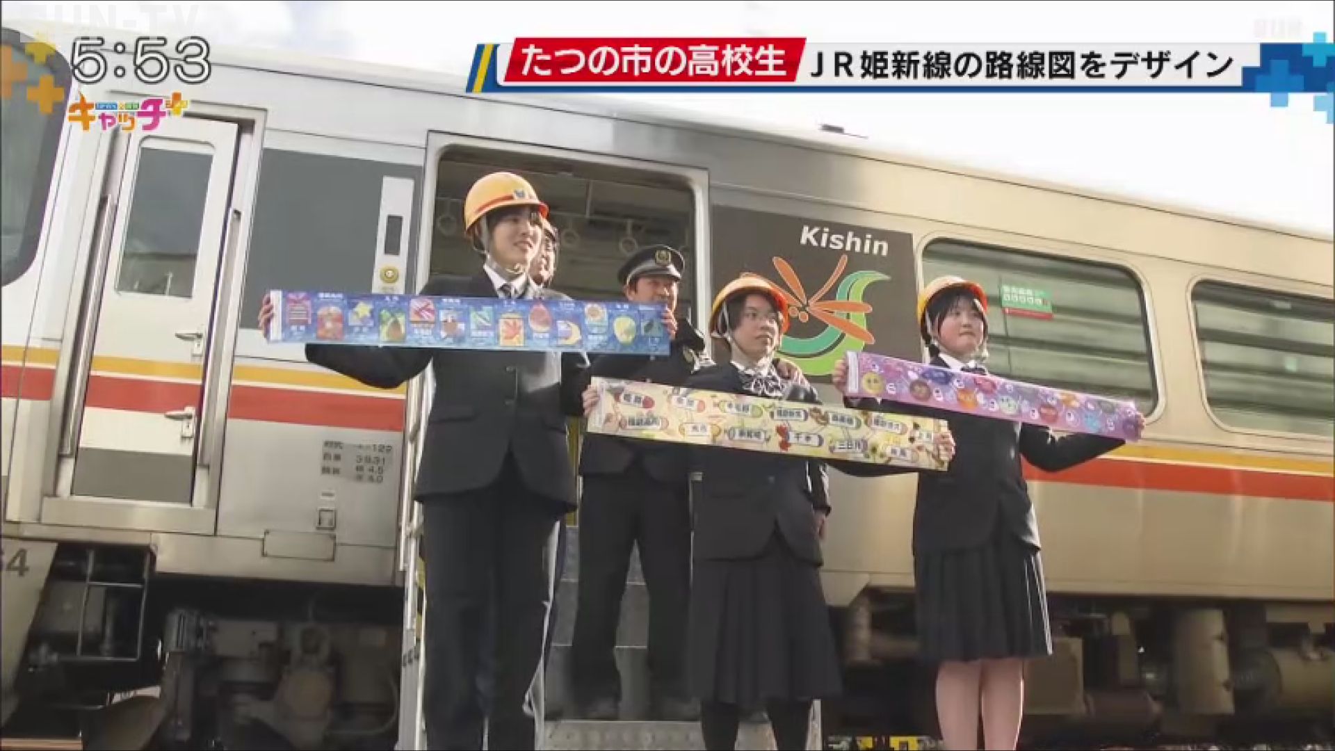 たつの市の高校生たちがデザインしたJR姫新線の路線図が、7日から姫新線の車内で掲示されています。