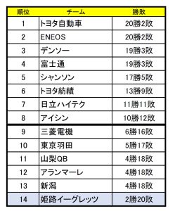 Wリーグは各チーム26試合を戦い、上位8チームがプレーオフに進んで優勝を争う。