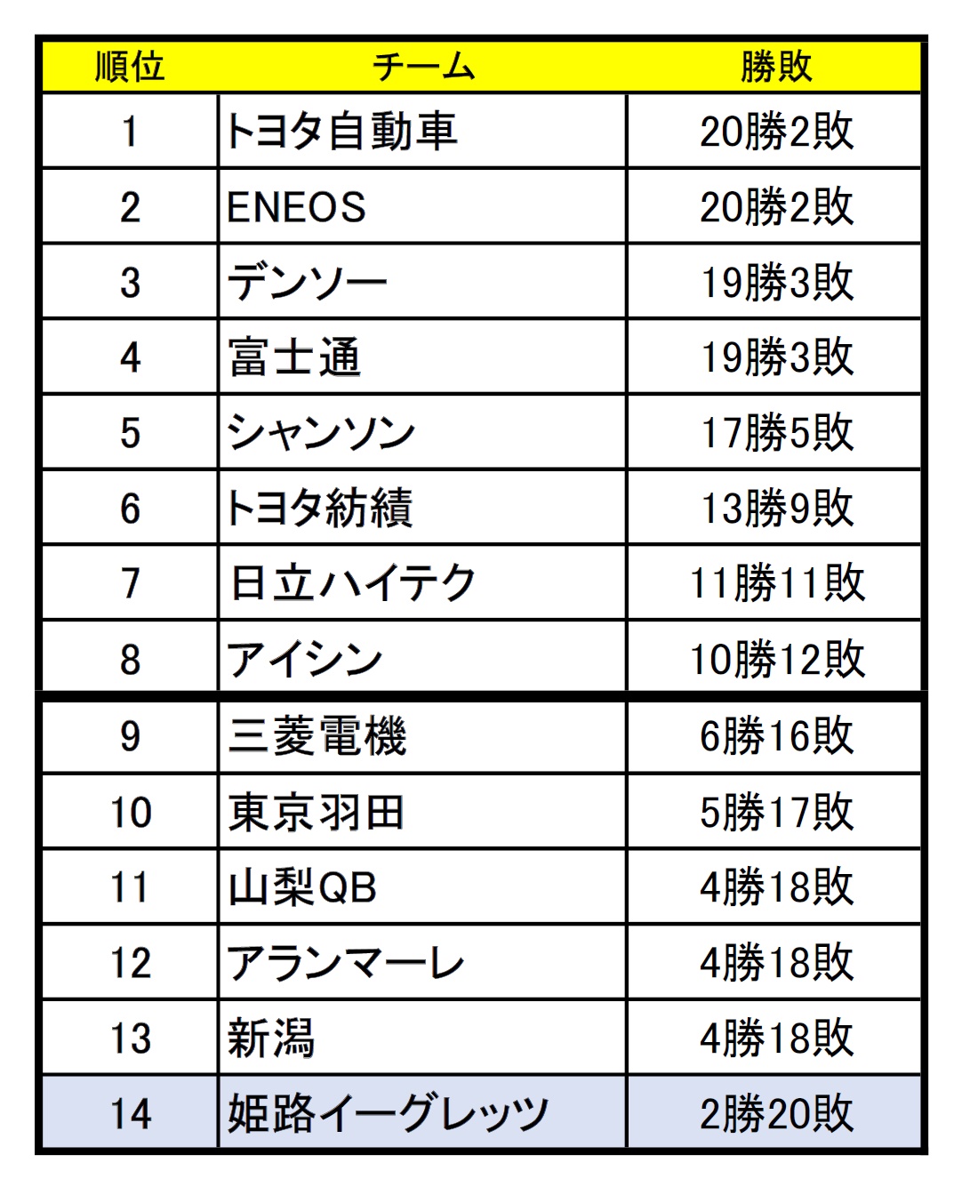 リーグ参入2シーズン目の姫路イーグレッツはここまで2勝20敗、全14チームの最下位と苦しい戦い。