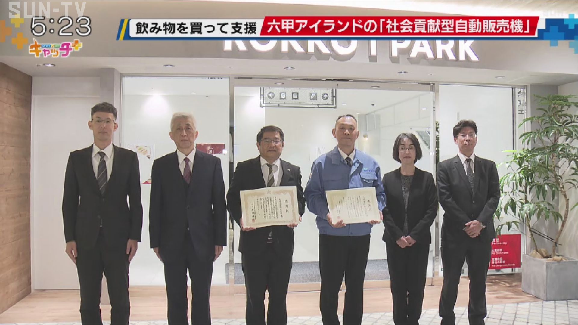 神戸・六甲アイランドの商業施設に売り上げの一部が被害者支援などに役立てられる自動販売機が設置されたことを受け、施設を管理する企業に感謝状が贈られました。