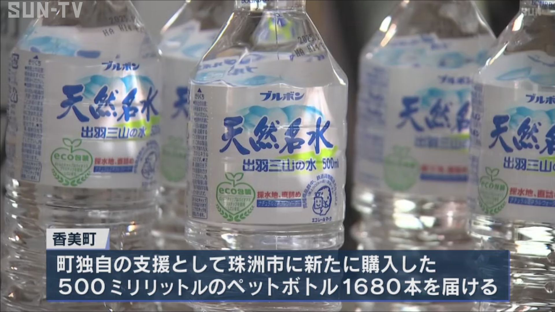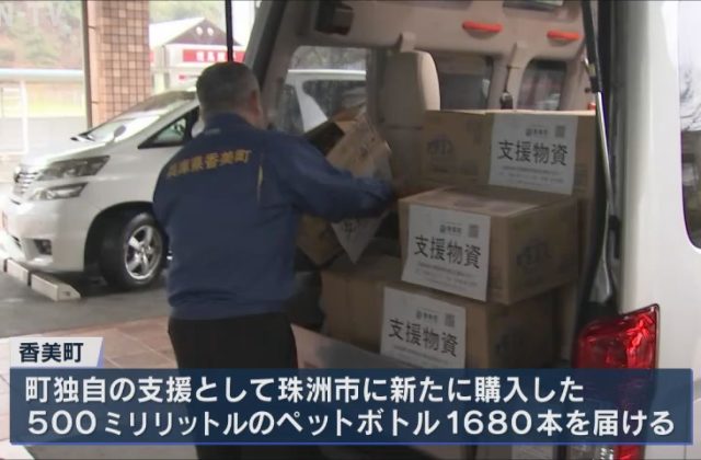 今回の支援は3月上旬に被災地から戻った職員から被災地では持ち運べる飲料水が不足しているとの報告があったことから、香美町は町独自の支援として珠洲市に新たに購入した500ミリリットルのペットボトル1680本を届けるということです。