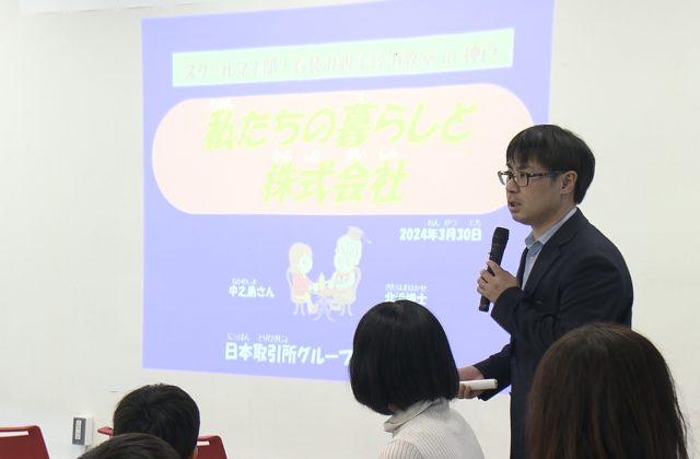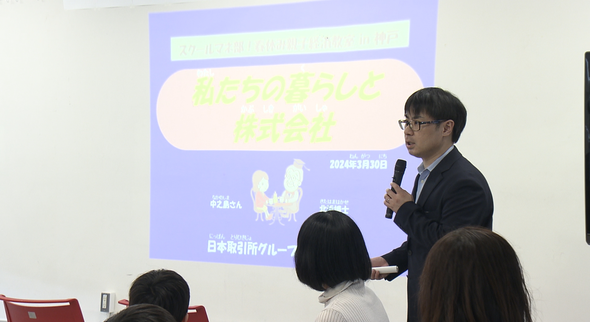 この教室は、私たちの暮らしが経済や株式会社とどのように関わっているのかを知ってもらおうと、日本取引所グループ・大阪取引所が神戸市内で初めて企画しました。