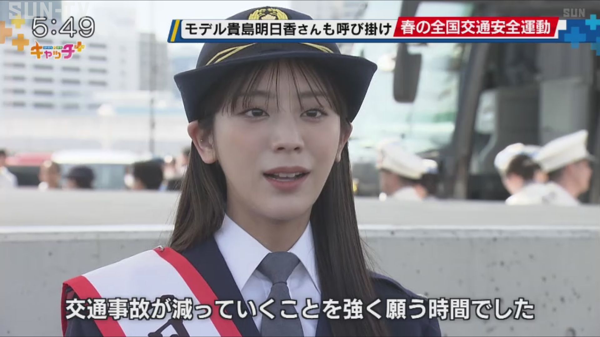 4月6日からの「春の全国交通安全運動」を前に、神戸市内で1日、出発式が行われ、神戸市出身のファッションモデル・貴島明日香さんが交通安全を呼び掛けました。