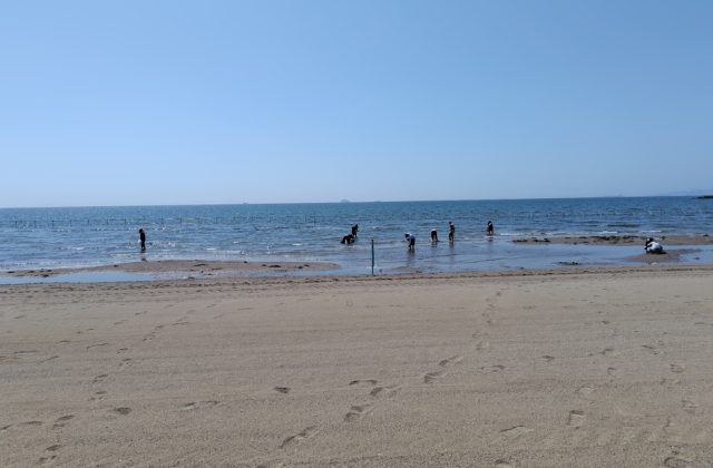 姫路市的形で潮干狩りが解禁 漁業関係者らが浜開き神事 2024.04.0118:19 地域・まち 兵庫県姫路市的形町の的形海水浴場で4月1日、潮干狩りが解禁されました。 1日は、地元の漁業関係者らおよそ20人が海の安全と潮干狩りの盛況を願って、浜開き神事に参加しました。 的形海水浴場は、白砂の海岸が500メートルにわたって続く遠浅の海水浴場で、4月から6月までは潮干狩りを楽しむことができます。 浜では早速、家族連れらが熊手やスコップを手に砂浜を掘り、潮干狩りを楽しんでいました。 的形海水浴場の潮干狩りは6月30日まで開かれています。 #姫路市 記事のギャラリーを見る ニュース一覧へ戻る