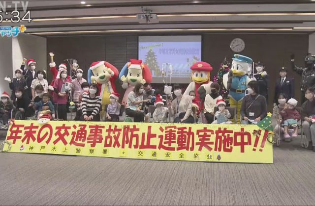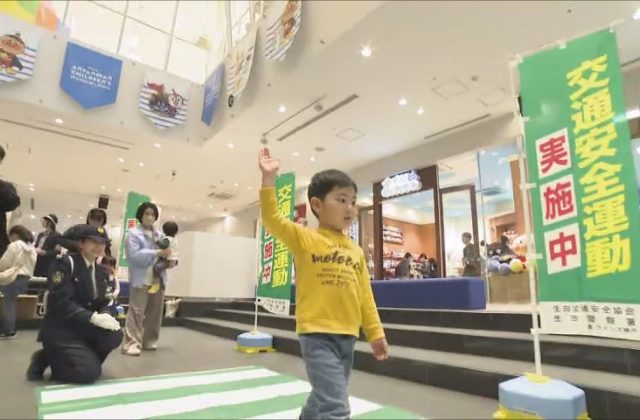 神戸アンパンマンこどもミュージアム&モールで行われたイベントには、たくさんの子どもたちが集まり、兵庫県警の警察官から横断歩道の正しい渡り方を教わりました。