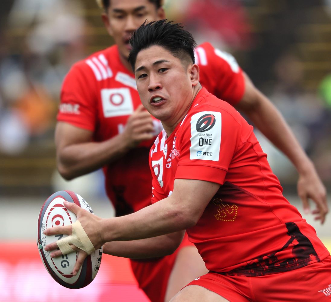 この試合はウィングの松永貫汰(まつなが・かんた)(大阪産業大附属校-筑波大 24歳)が、得意のランとキックで何度も突進し、スタンドを沸かせた。