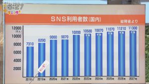 総務省によりますと、国内のSNS利用者は、調査が始まった2018年は7310万人ですが、その後年々増加しています。