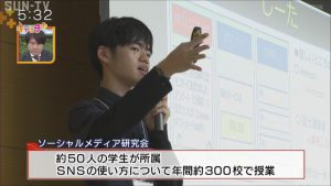 およそ50人の学生が所属していて、SNSで子どもたちがトラブルに巻き込まれないように、ネットの恐ろしさや上手く使っていく方法を、年間およそ300カ所の学校に出向き、授業を行っています。