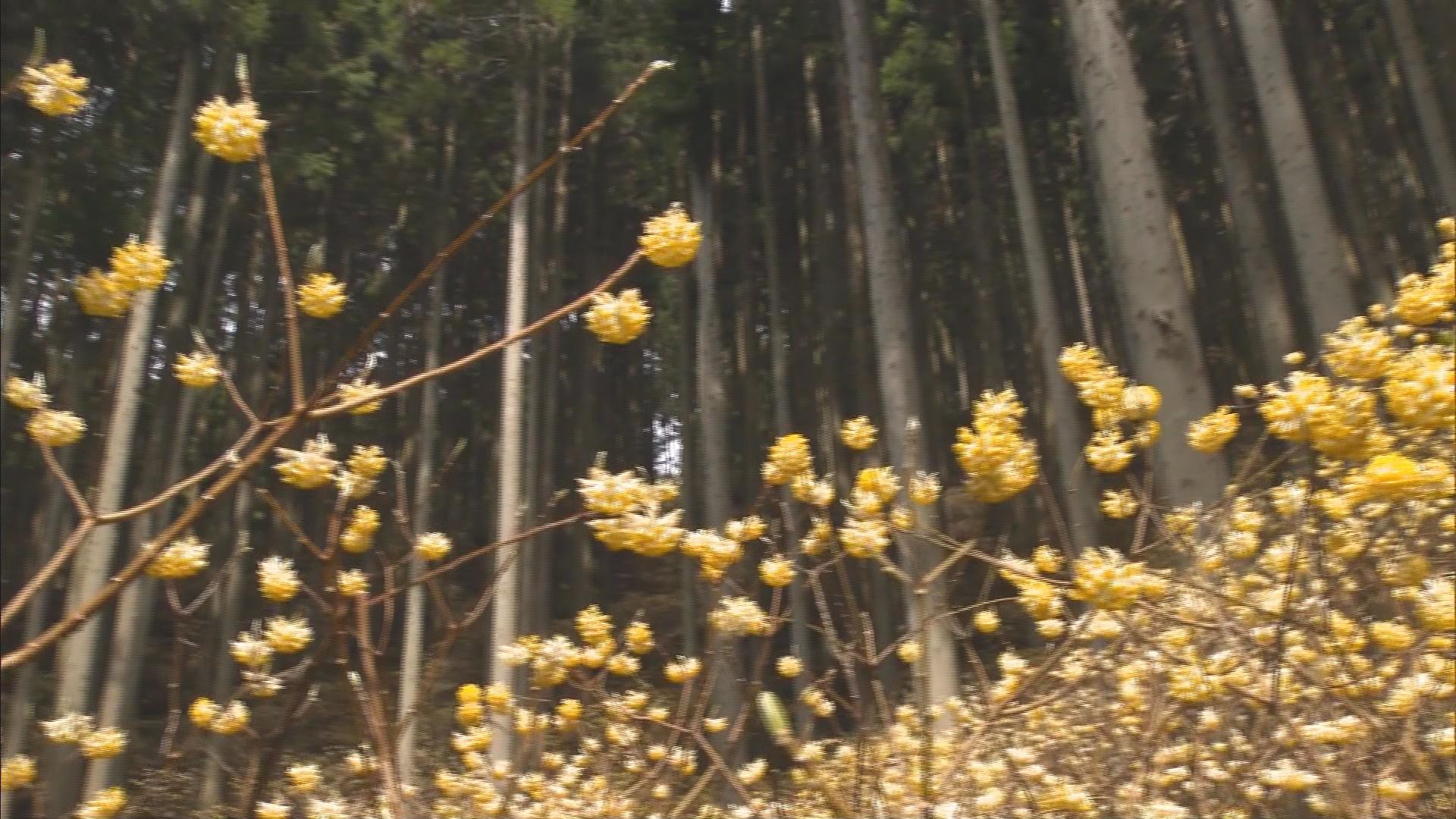 兵庫県宍粟市の杉林で和紙の原料としても使用されるミツマタが2024年も黄色い花を咲かせました。
