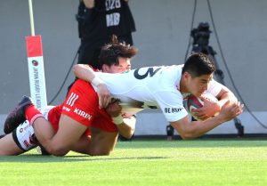 8分、李承信(日本代表)のキックパスを山下楽平がキャッチしてトライ。