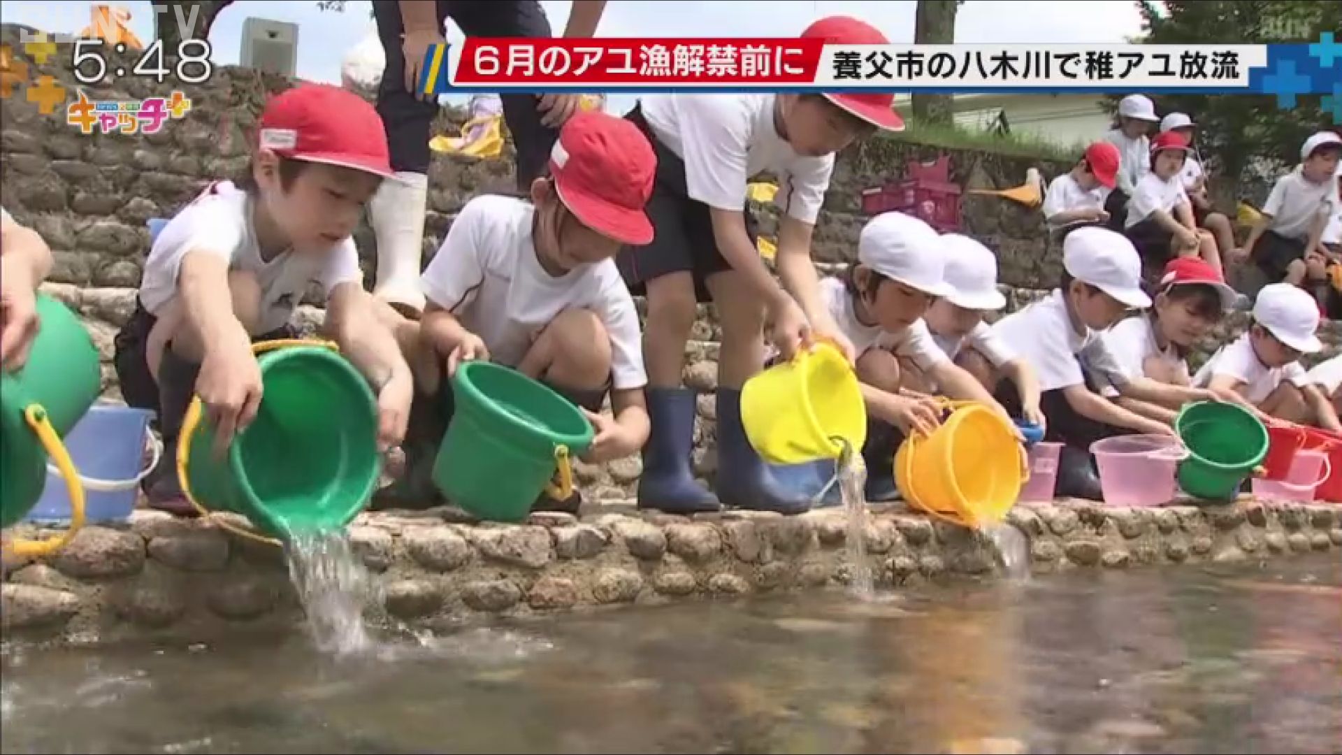 6月のアユ漁解禁を前に円山川水系の八木川では、養父市の子どもたちが、アユの稚魚を放流しました。