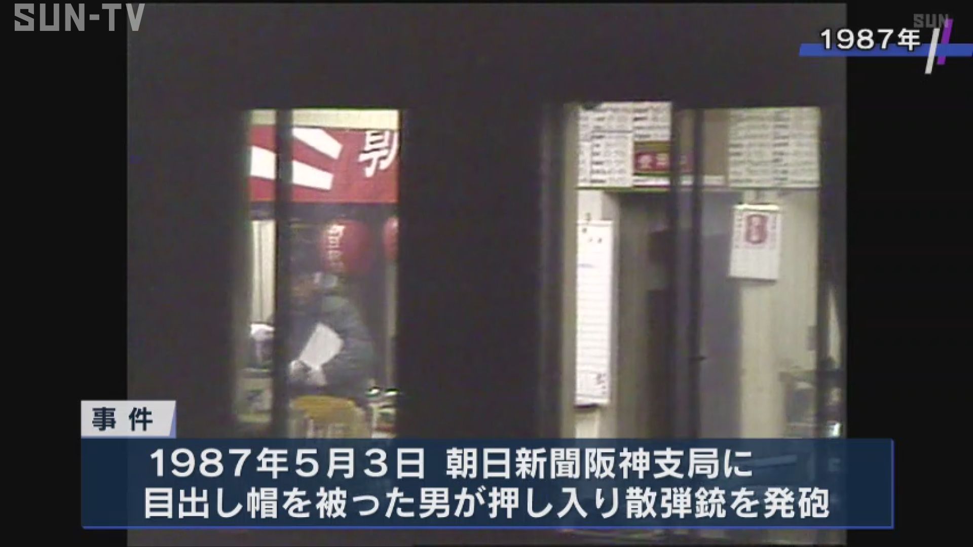 この事件は1987年5月3日、朝日新聞阪神支局に目出し帽を被った男が押し入り散弾銃を発砲。