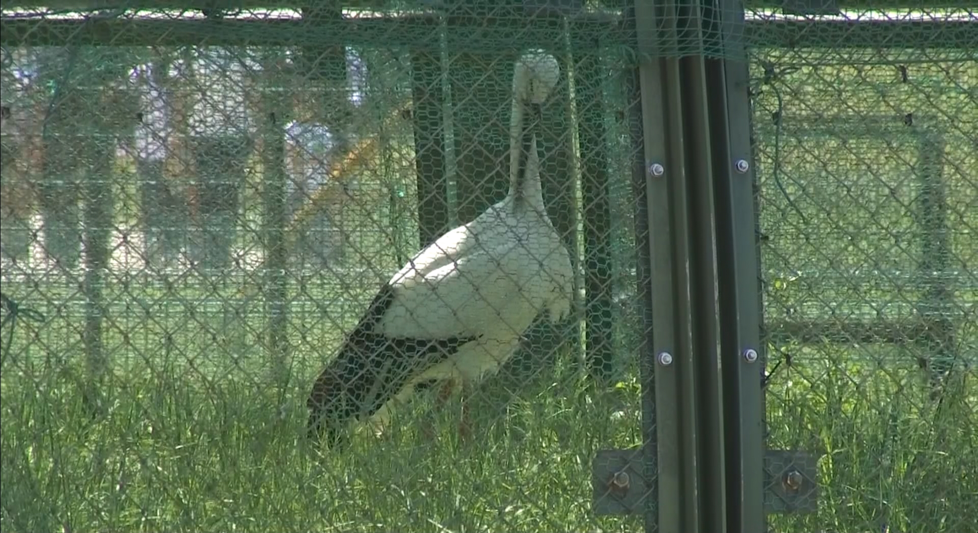 参加者は、職員の説明を受けながらバックヤードへと案内され、繁殖するペアでの飼育や、野生復帰するための訓練をするケージなど、コウノトリの研究の最前線を間近に眺めていました。