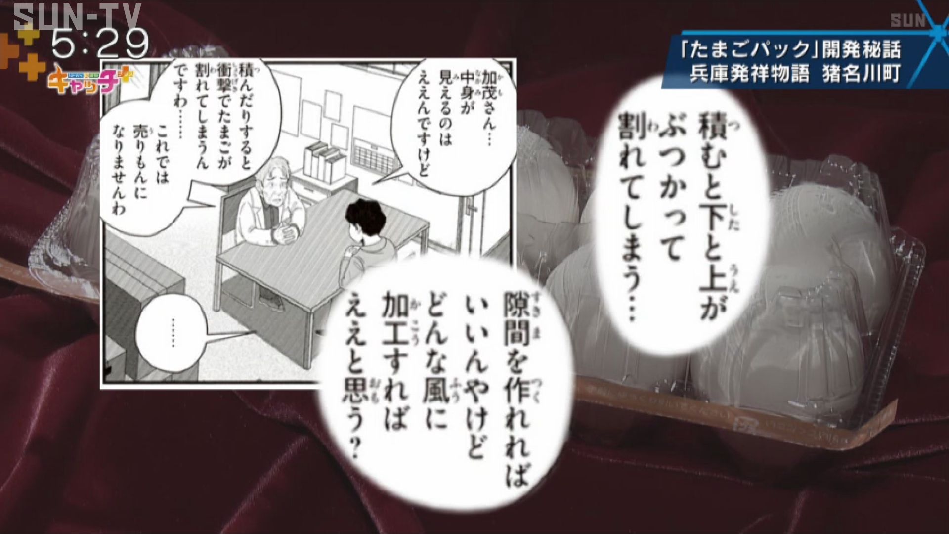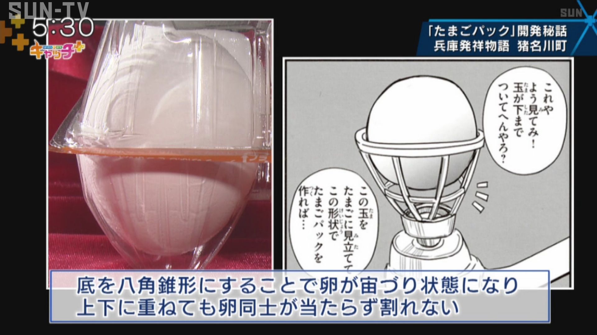 「玉が下までついてへんやろ?この玉を卵に見立てて、この形状で卵パックを作れば…」