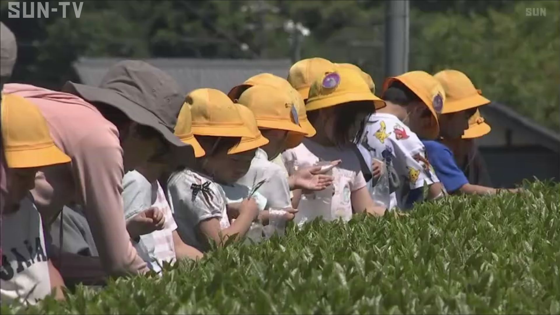園児たちは摘み取った茶葉をこども園に持ち帰り、パンケーキや天ぷらを作るということです。