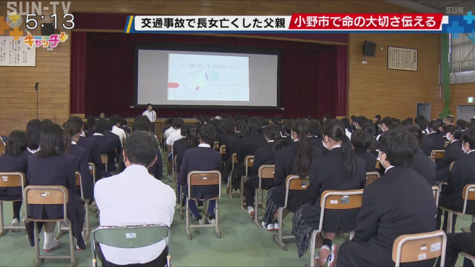 交通事故で娘を亡くした男性が31日、小野市の中学校で講演し生徒たちに命の大切さを訴えました。