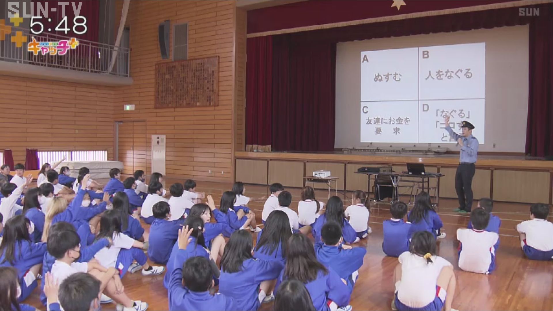 教室では、犯罪に巻き込まれないためにSNSにあげてはいけない個人情報や写真についてクイズ形式で紹介した他、小学生でも非行にあたる行為についても伝えられました。