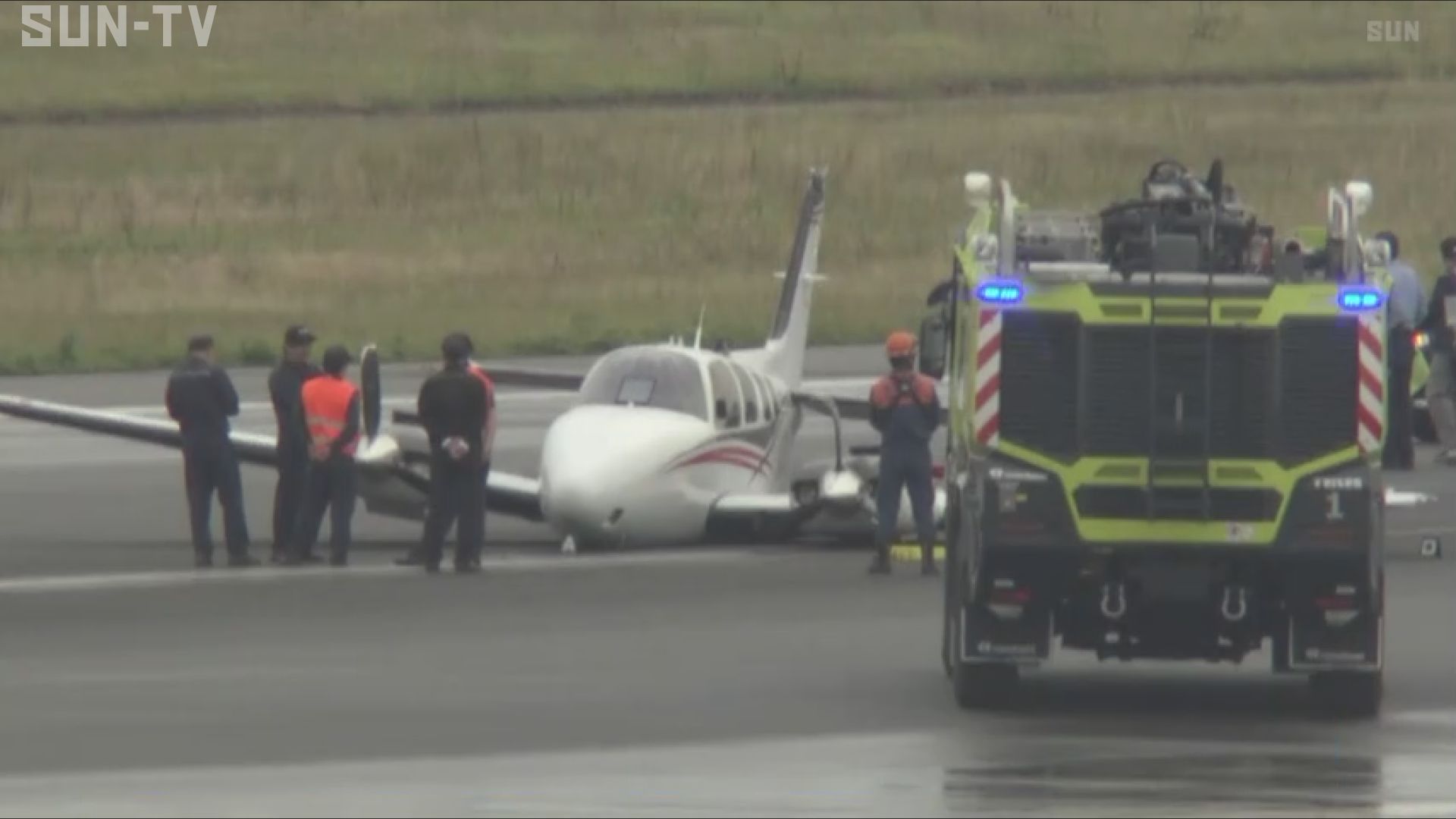 5月31日午後2時半ごろ、神戸空港の滑走路にプロペラ機が胴体着陸しました。