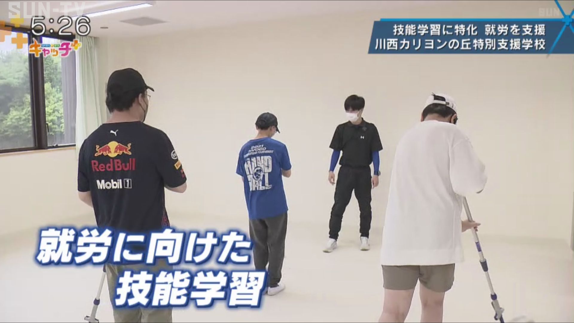 清掃の手順やマナーなどが学べるビルメンテナンス室も整備。就労に向けた技能学習にも力を入れています。