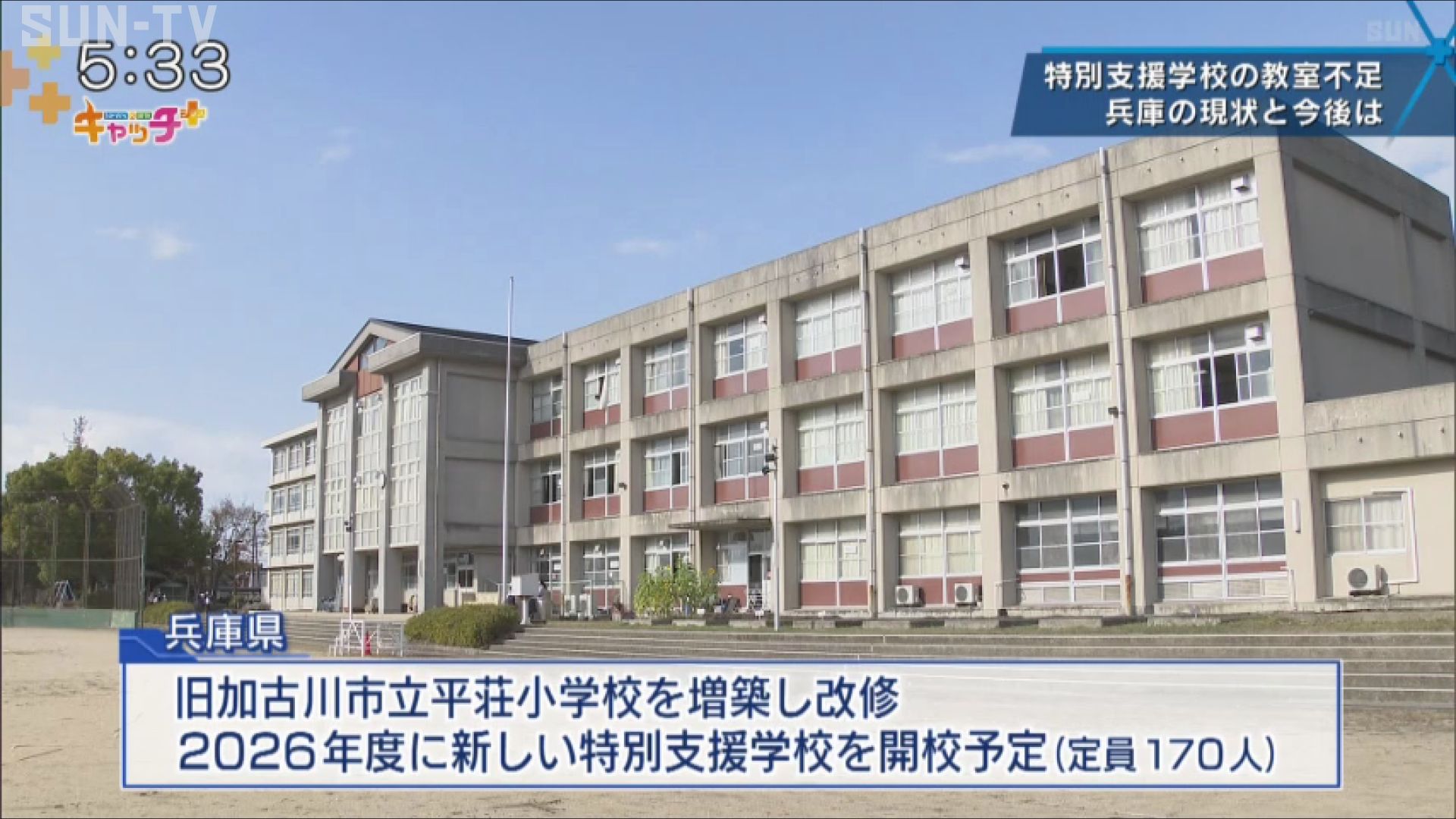 また県では、近隣の東はりま特別支援学校でもおよそ4割の定員超過となっていることから、校舎を増築する他、旧加古川市立平荘小学校を増築改修。2026年度に定員170人の新たな特別支援学校を開校する予定です。