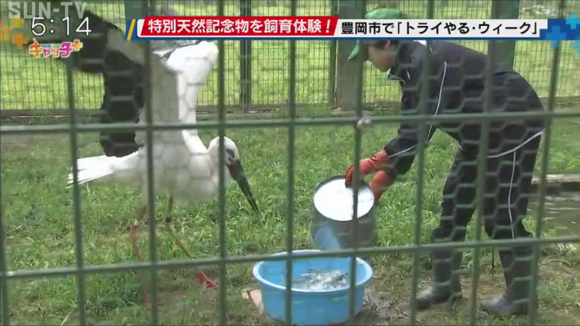 豊岡市の中学生が4日、職業体験「トライやる・ウィーク」でコウノトリの飼育を体験し命の大切さを学びました。