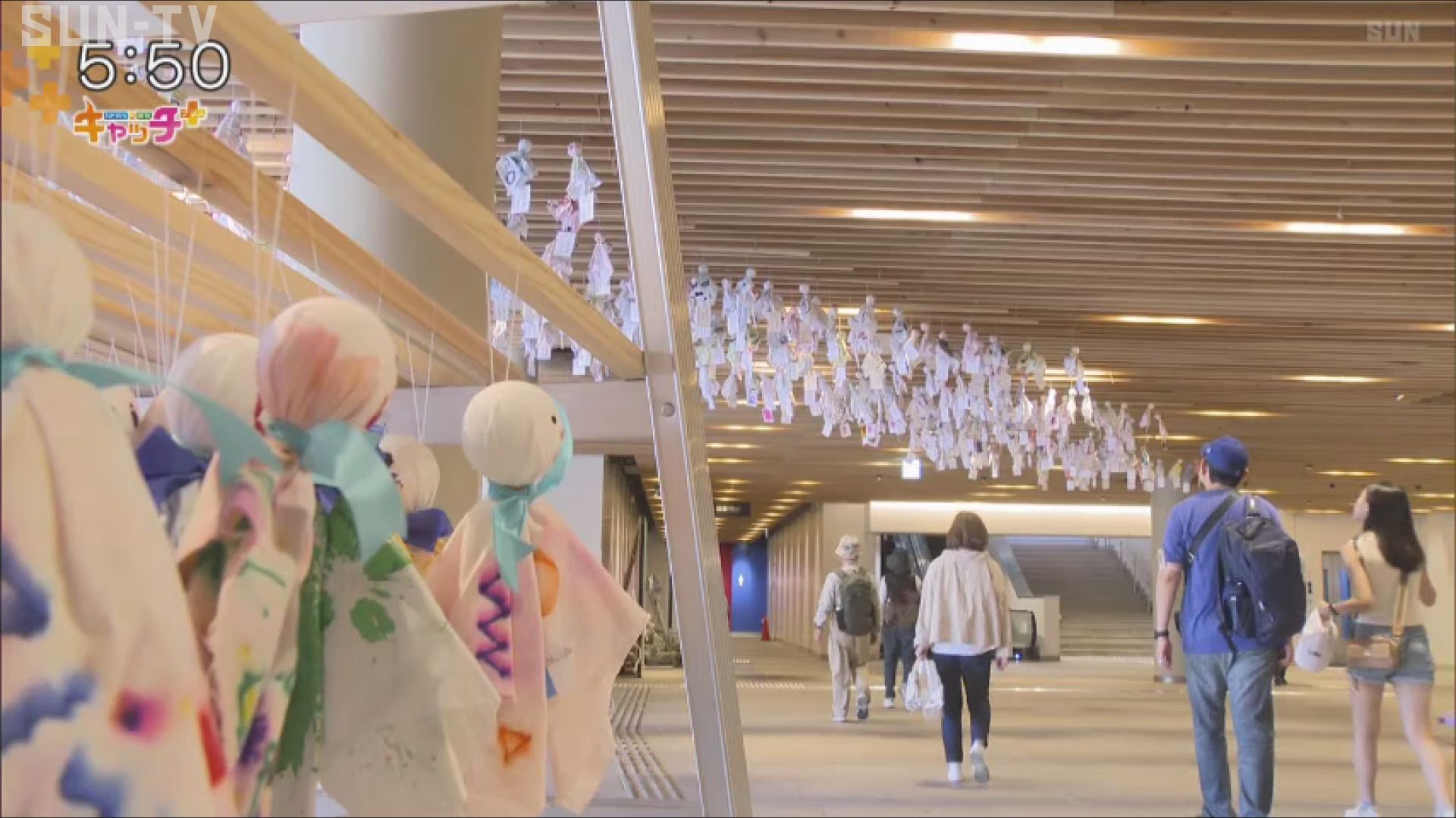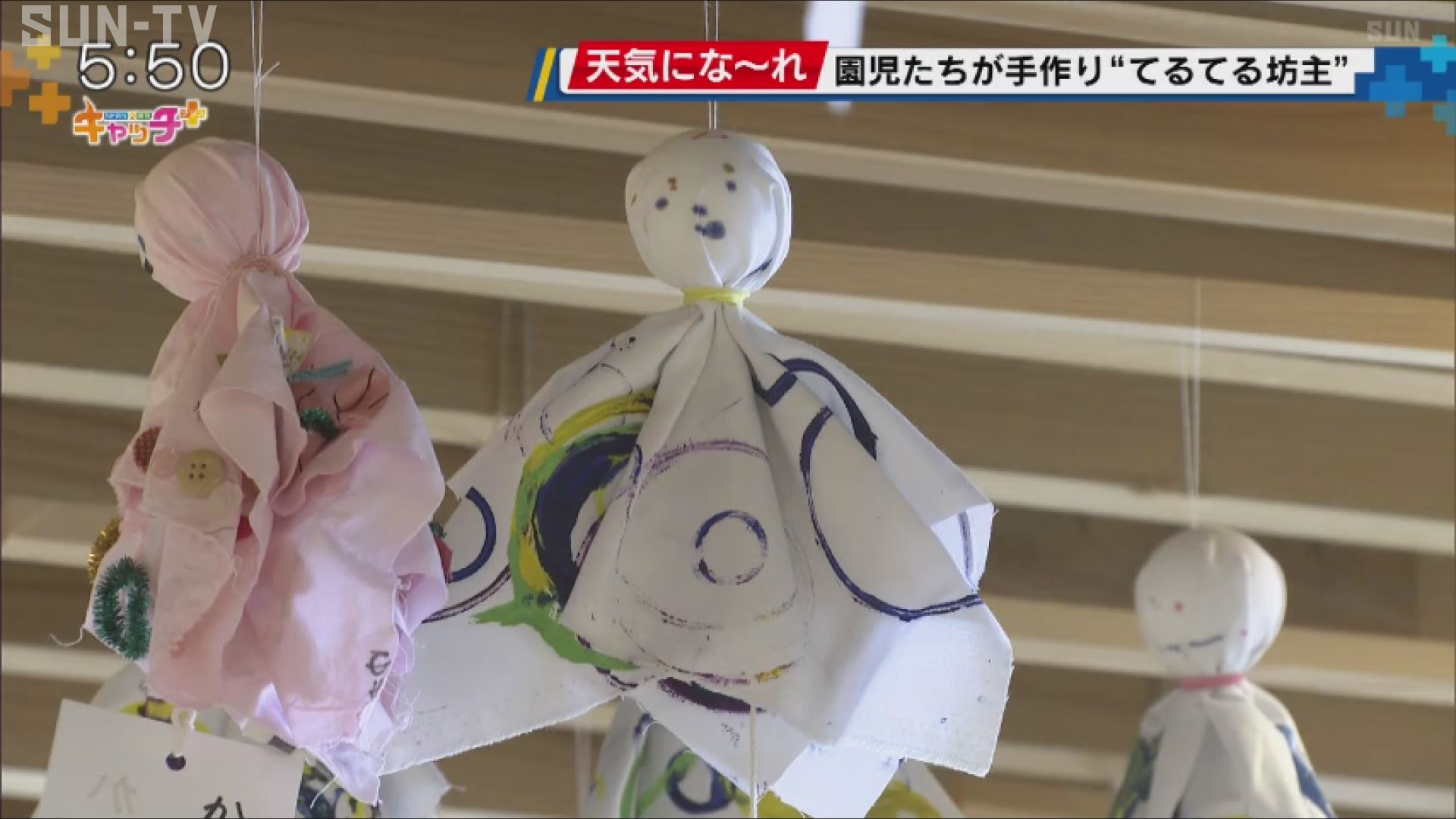 播磨の初夏の風物詩「姫路ゆかたまつり」の晴天を願い、JR姫路駅では、園児たち手作りのてるてる坊主が飾られています。