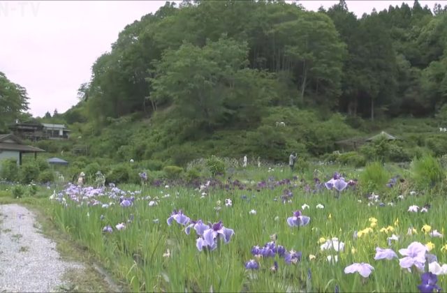 佐用町にある「西新宿花しょうぶ園」では、1万2000平方メートルの広大な敷地で、170種1万3000株のハナショウブが見頃を迎えています。