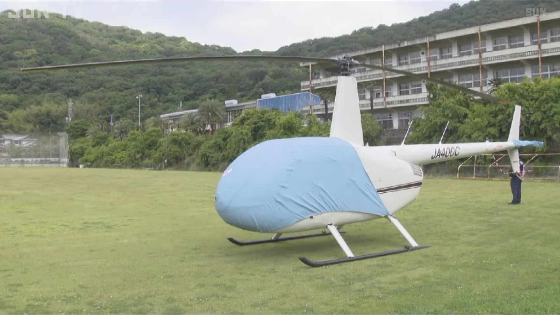 着陸時、学校のグラウンドに人はおらず、ヘリコプターには社員2人が搭乗していましたが、けが人はいませんでした。
