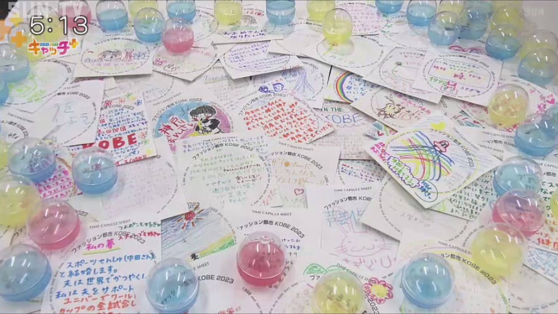 直径7センチほどのカプセルには「いつか神戸に住みたい」や「きれいで住み良い街になってほしい」など未来の神戸に対する夢や希望など、2000個の思いが記されています。