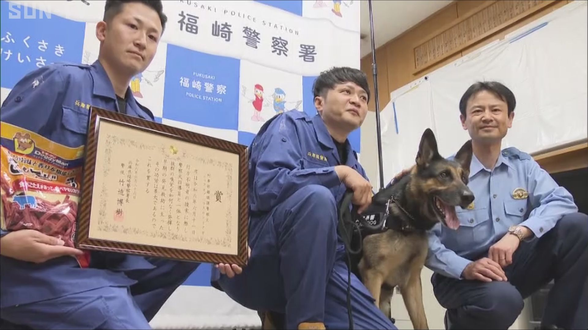 福崎町で行方不明となっていた高齢女性の発見に貢献したとして、兵庫県警の警察犬に感謝状が贈られました。
