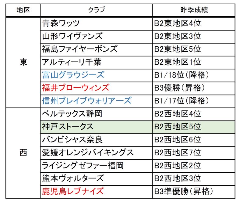 来シーズンのB2は、B1に昇格した滋賀と越谷が抜け、代わって信州と富山がB1から降格した。