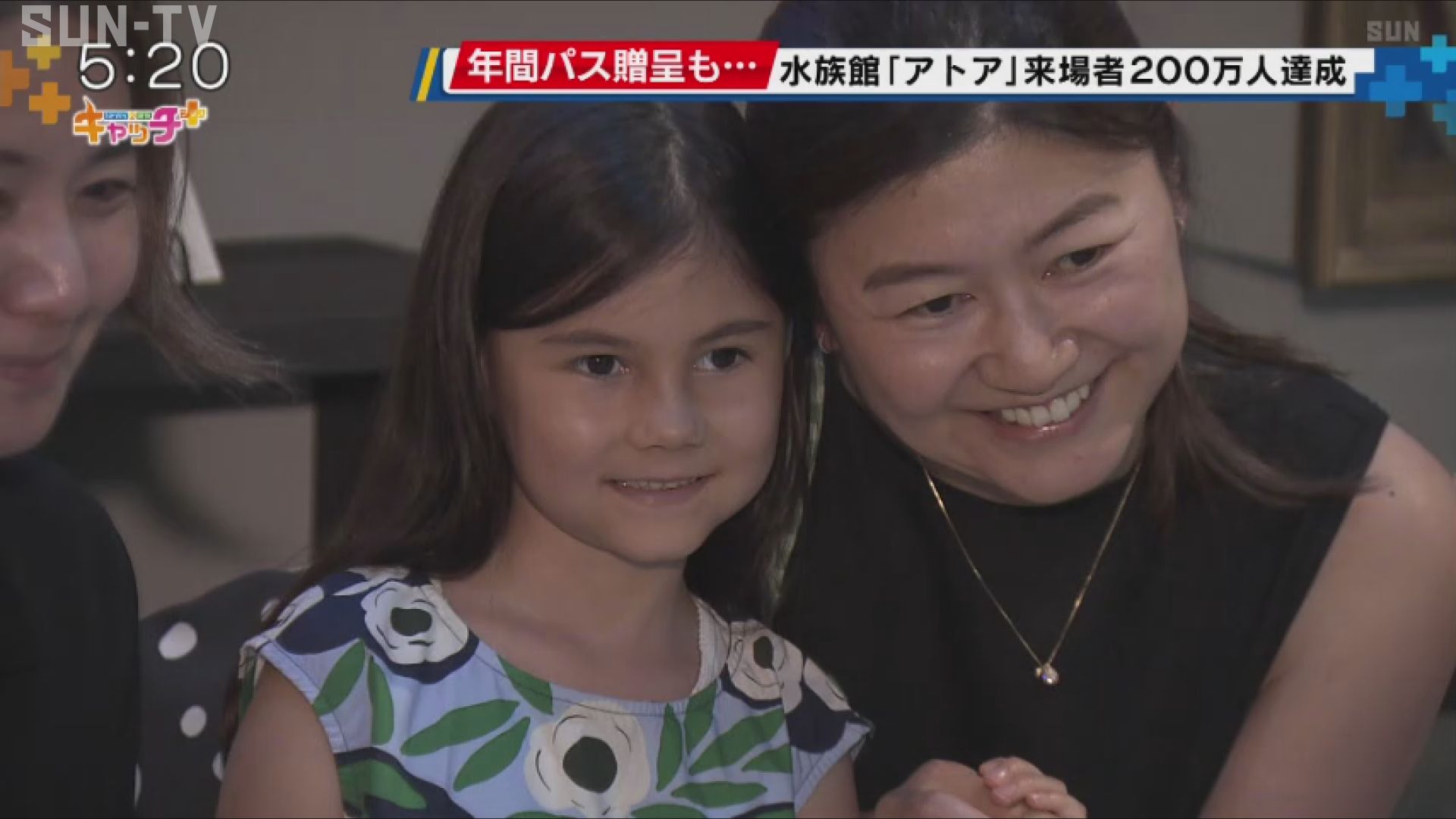 7月4日前10時47分、記念すべき200万人目の来場者として水族館のスタッフらから拍手で迎えられたのは、大原夏美さんと娘の菊ちゃん(6歳)の親子です。