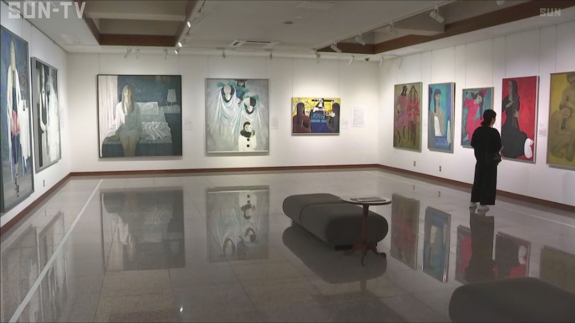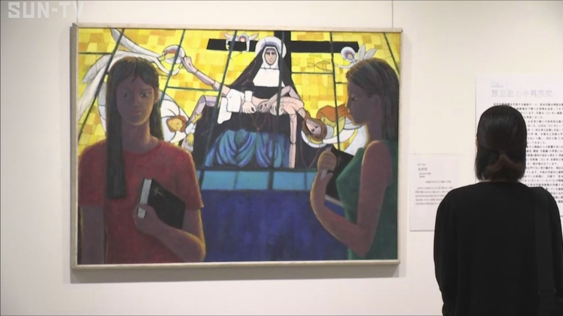 中尾さんは大画面の人物画を得意とし、初期には母子や労働者を題材にした力強い作品を手掛けた一方、晩年は白を基調とした上品さと儚さのまじりあった女性像を描きました。