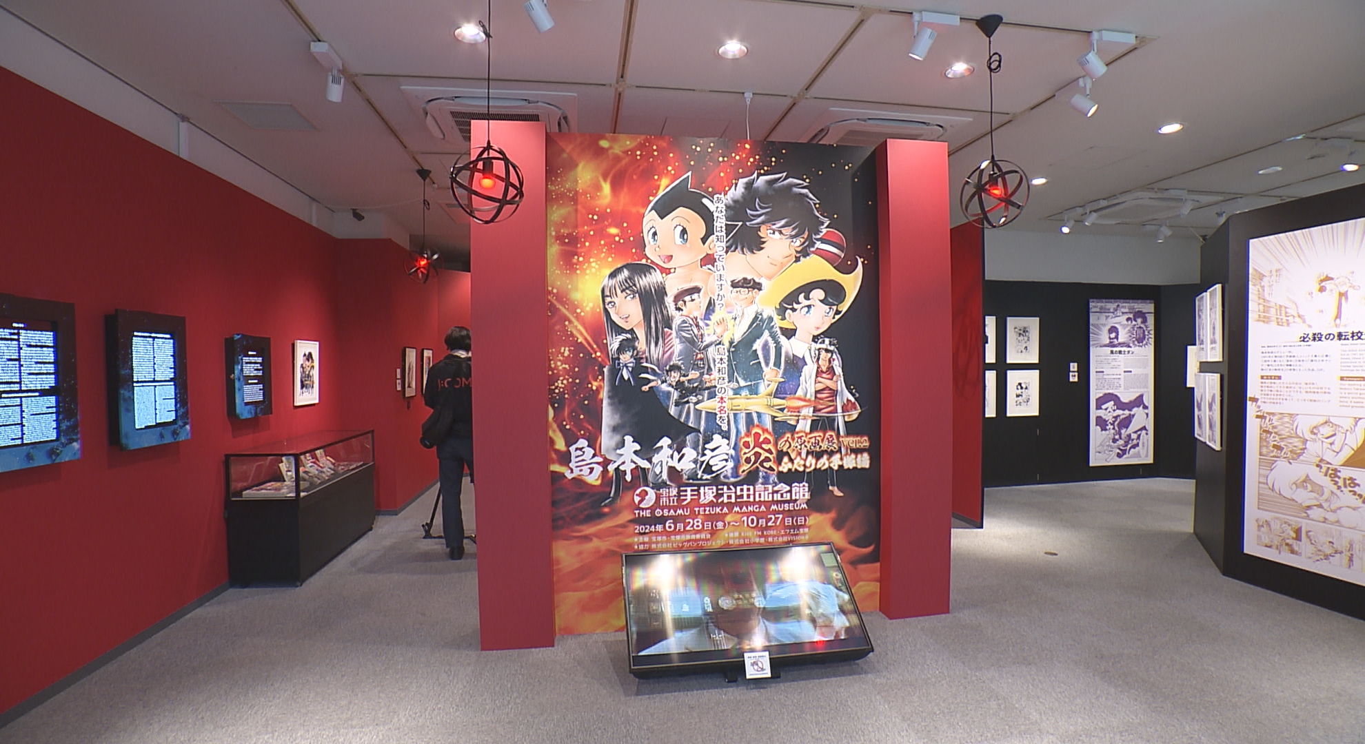 宝塚市の手塚治虫記念館で開かれているのは、熱血野球漫画の「逆境ナイン」や、漫画家としての波乱の生活を描いた自伝的作品「アオイホノオ」などで知られる島本和彦さんの企画展です。