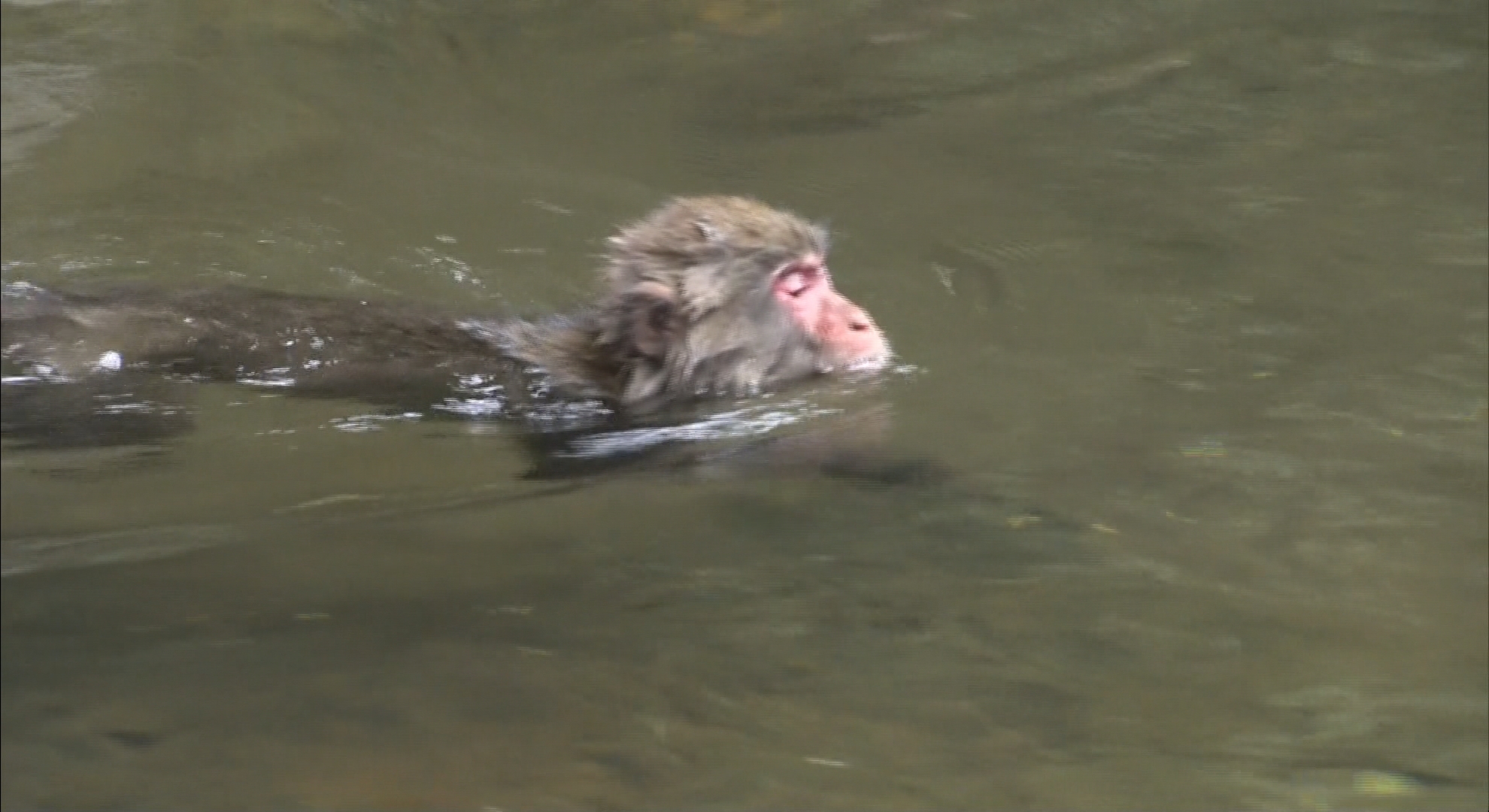水面をスイスイと、「イヌかき」ならぬ、「サルかき」で泳ぐ二ホンザル。