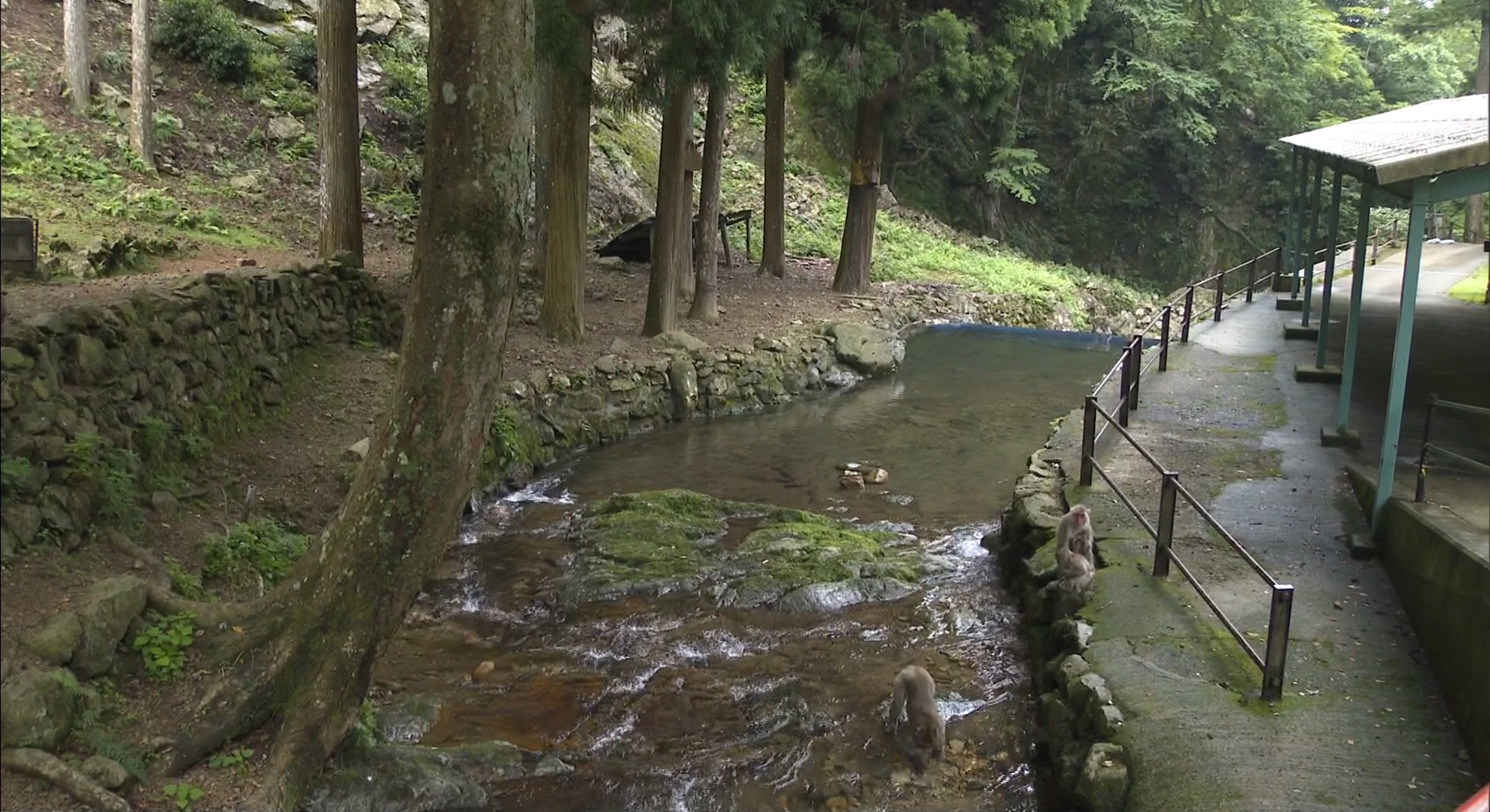 佐用町の「船越山るり寺モンキーパーク」では、毎年この時期に園内を流れる川をせき止めて「おさるのプール」を作り、ニホンザルが暑さをしのいでいます。