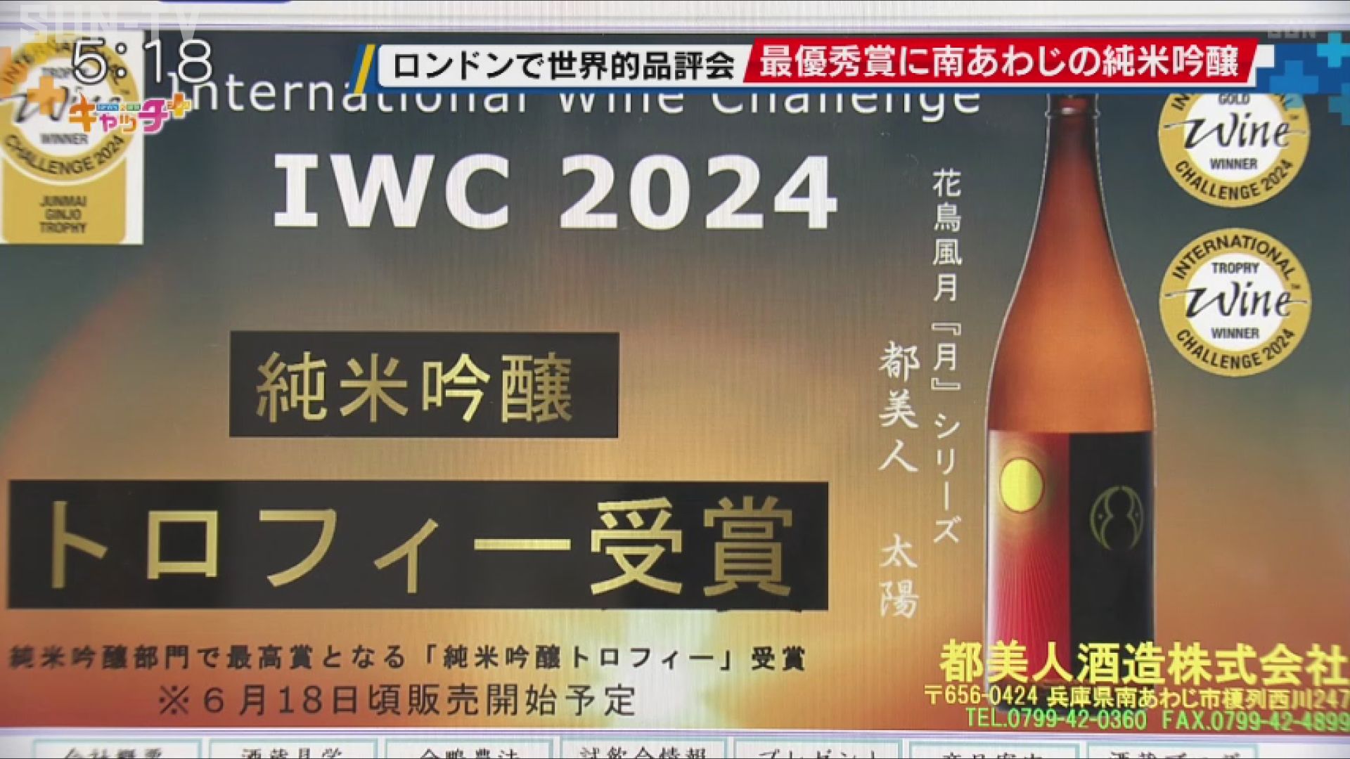 世界的なワイン品評会の日本酒部門の最優秀賞が発表され、南あわじ市の純米吟醸酒が選ばれました。