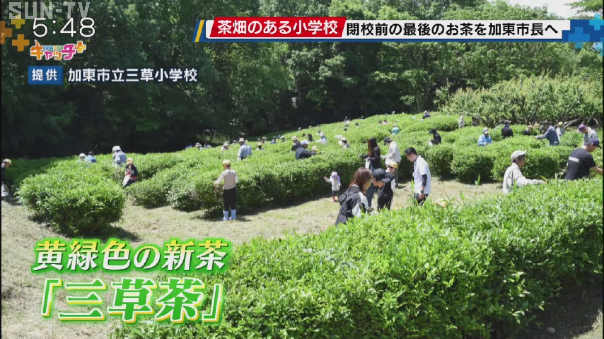 三草小学校には50年以上前から茶畑があり、毎年、児童らが大切に育てていて、鮮やかな黄緑色の新茶は「三草茶」の名前で地域に親しまれてきました。