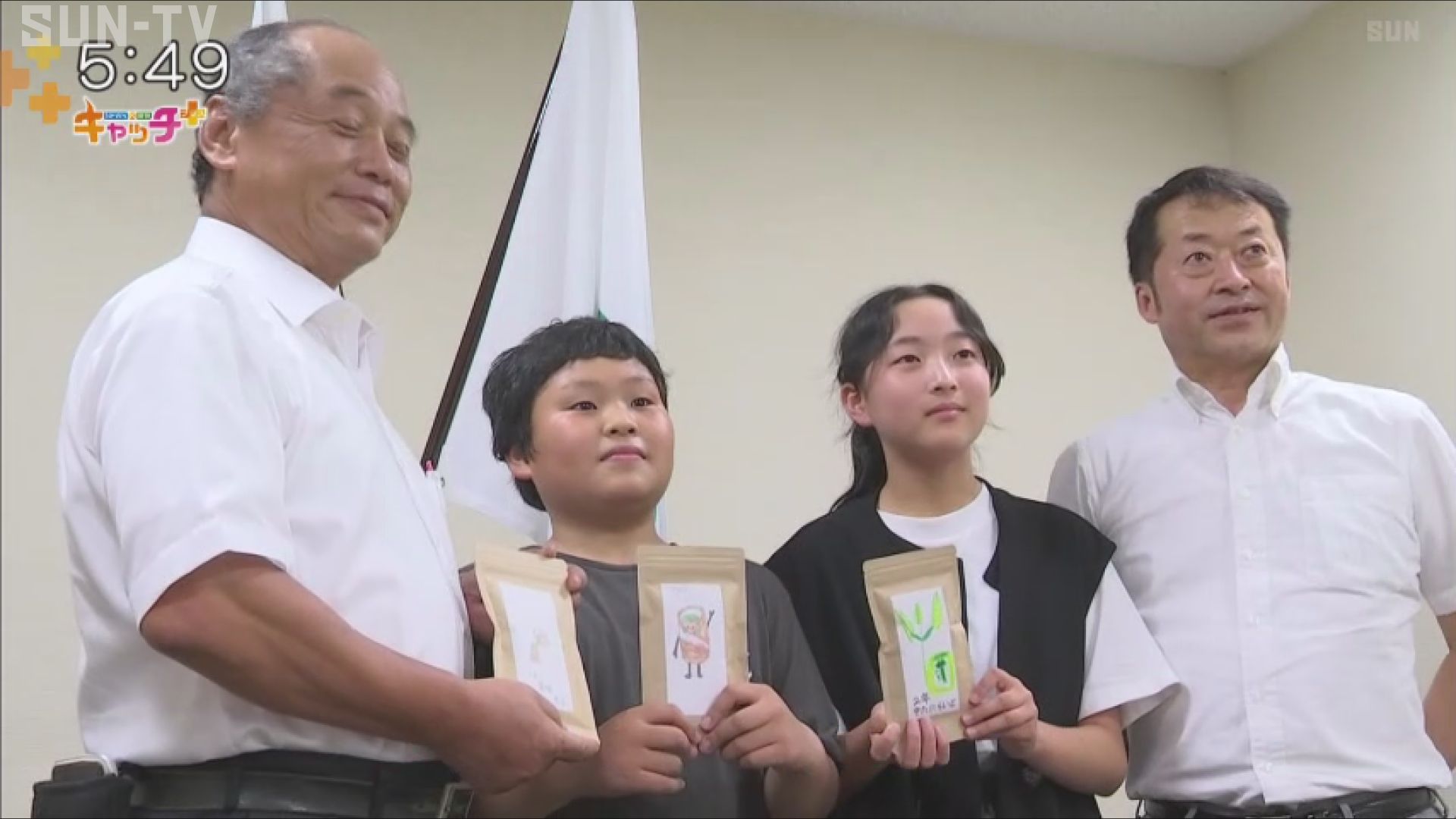 加東市の岩根市長に収穫したお茶を届けたのは加東市立三草小学校の児童代表2人です。