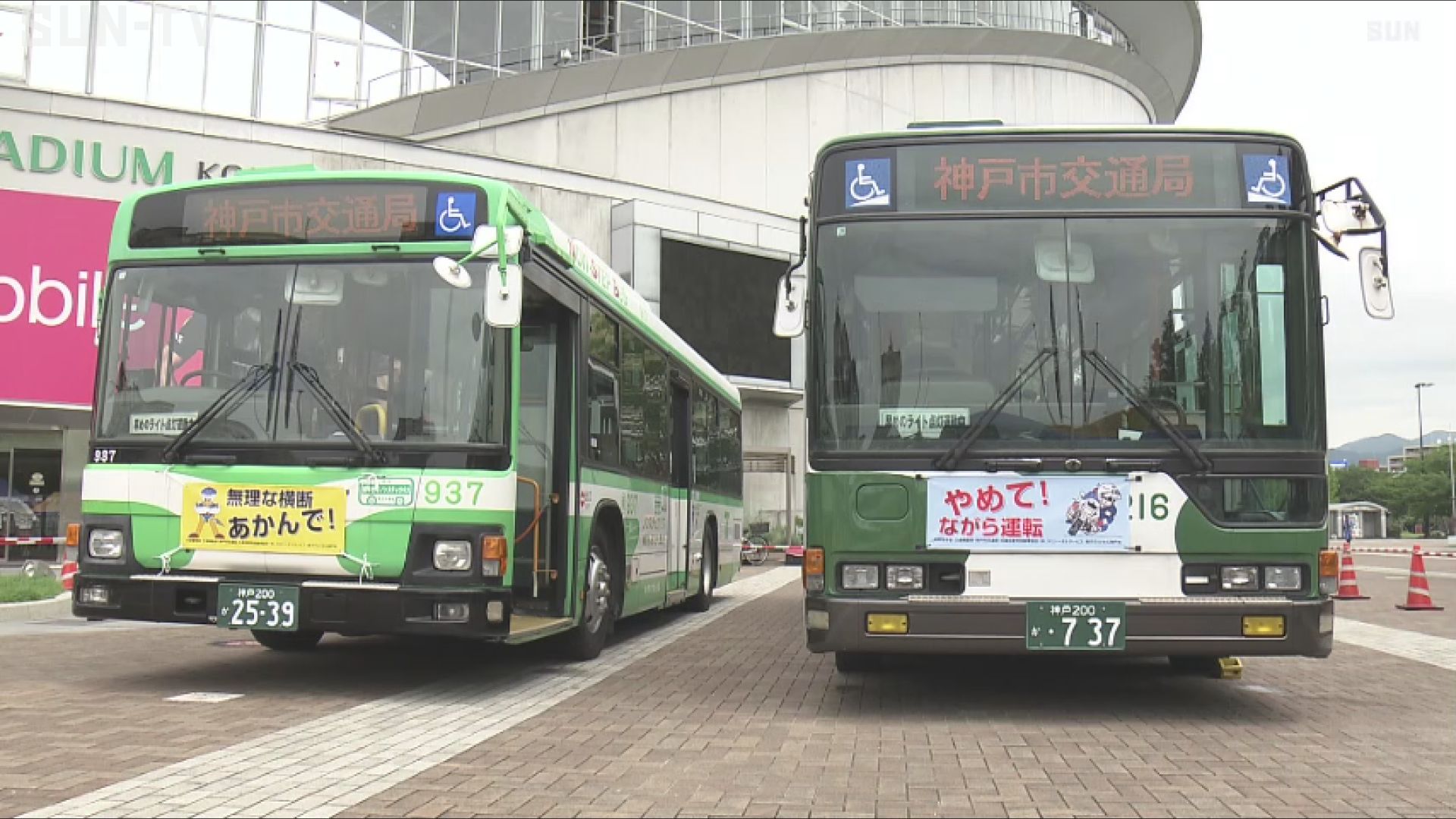神戸市兵庫区では、区内を走るバスに横断幕が取り付けられ事故防止を呼び掛けています。