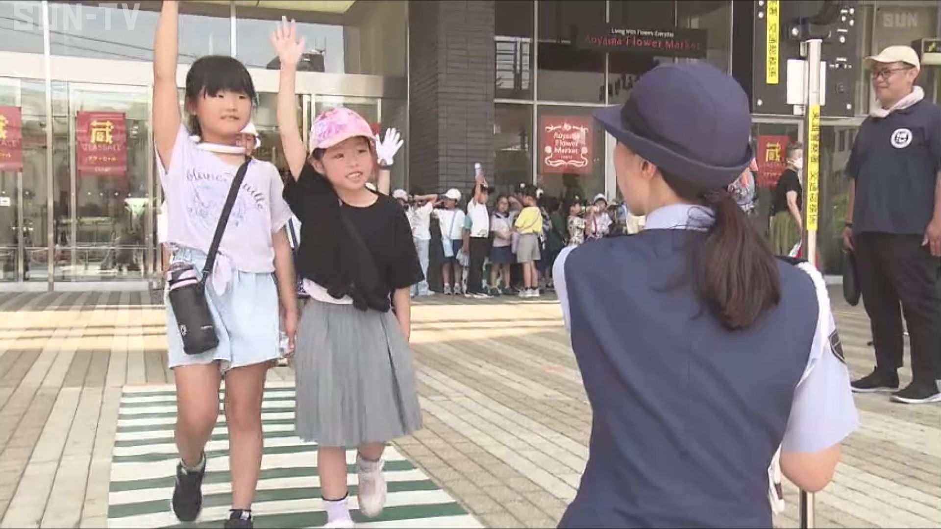 子どもたちは、警察官から横断歩道の安全な渡り方を教わり、左右をしっかり確認してからまっすぐ手を上げて渡る練習をしていました。