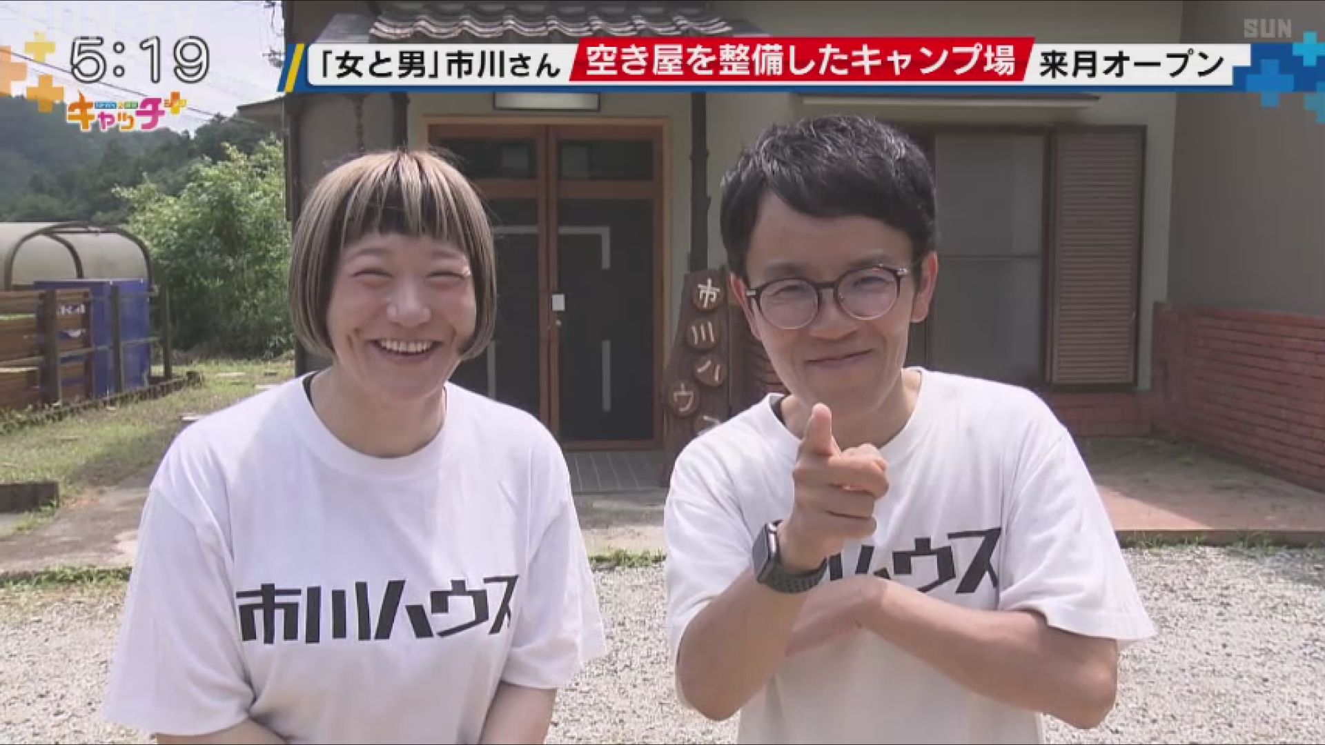 お笑いコンビ「女と男」の市川さんが、兵庫県市川町の空き屋や山林を整備して作ったキャンプ施設が完成し、24日、記者会見が開かれました。