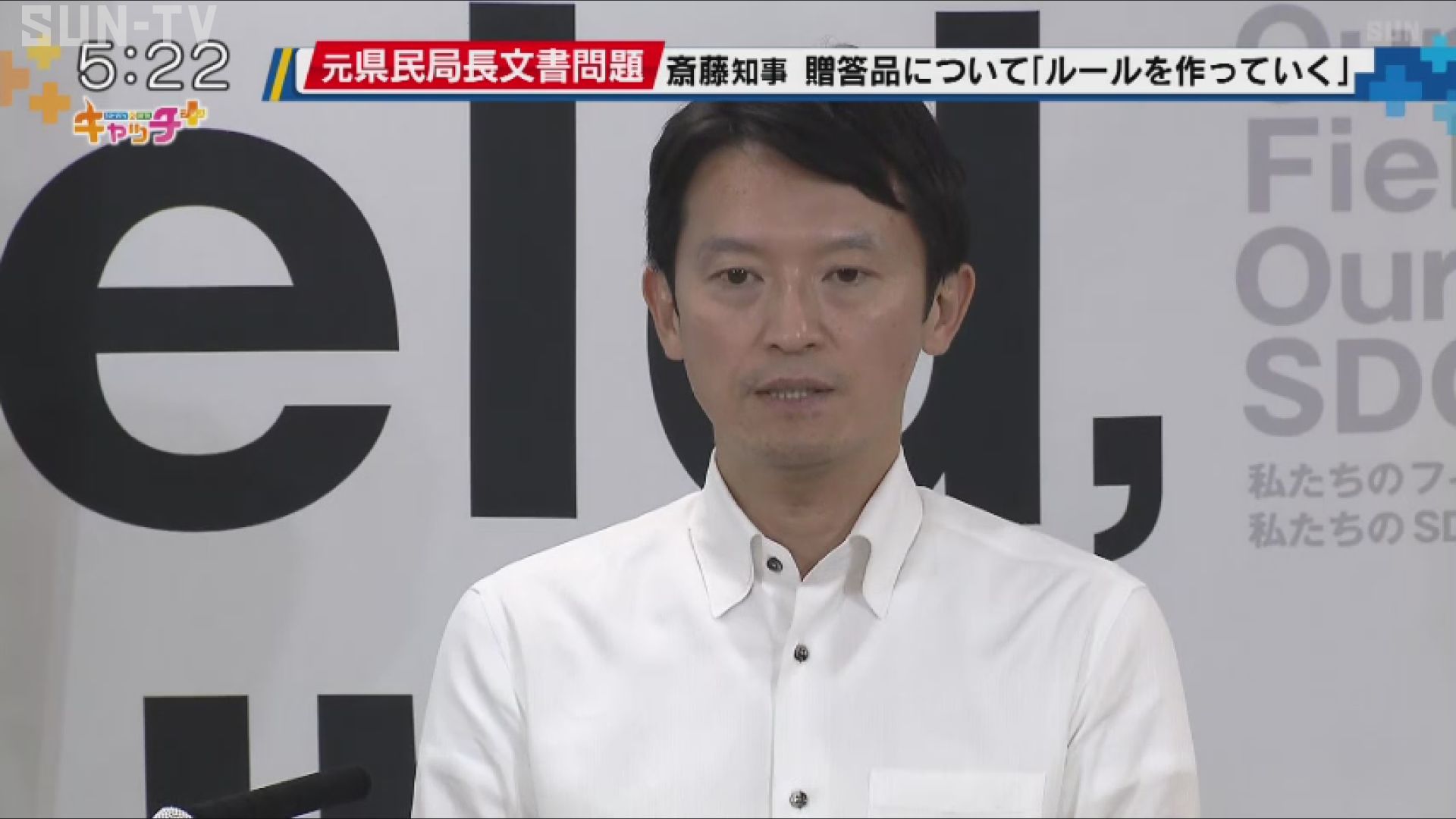 元西播磨県民局長の男性が文書で告発した、斎藤知事のパワハラや贈答品を受け取っていた疑惑を巡る問題で、斎藤知事は24日、贈答品の受け取りについては「時間をかけてしっかりとルールを作っていく」と、考えを示しました。