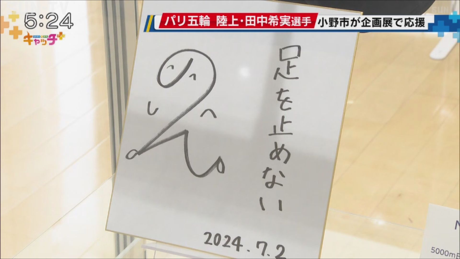 展示コーナーにはこれまでの活躍を示した年表の他、陸上競技への思いをしたためた直筆のサイン色紙も飾られていて、企画展は8月30日まで開かれます。