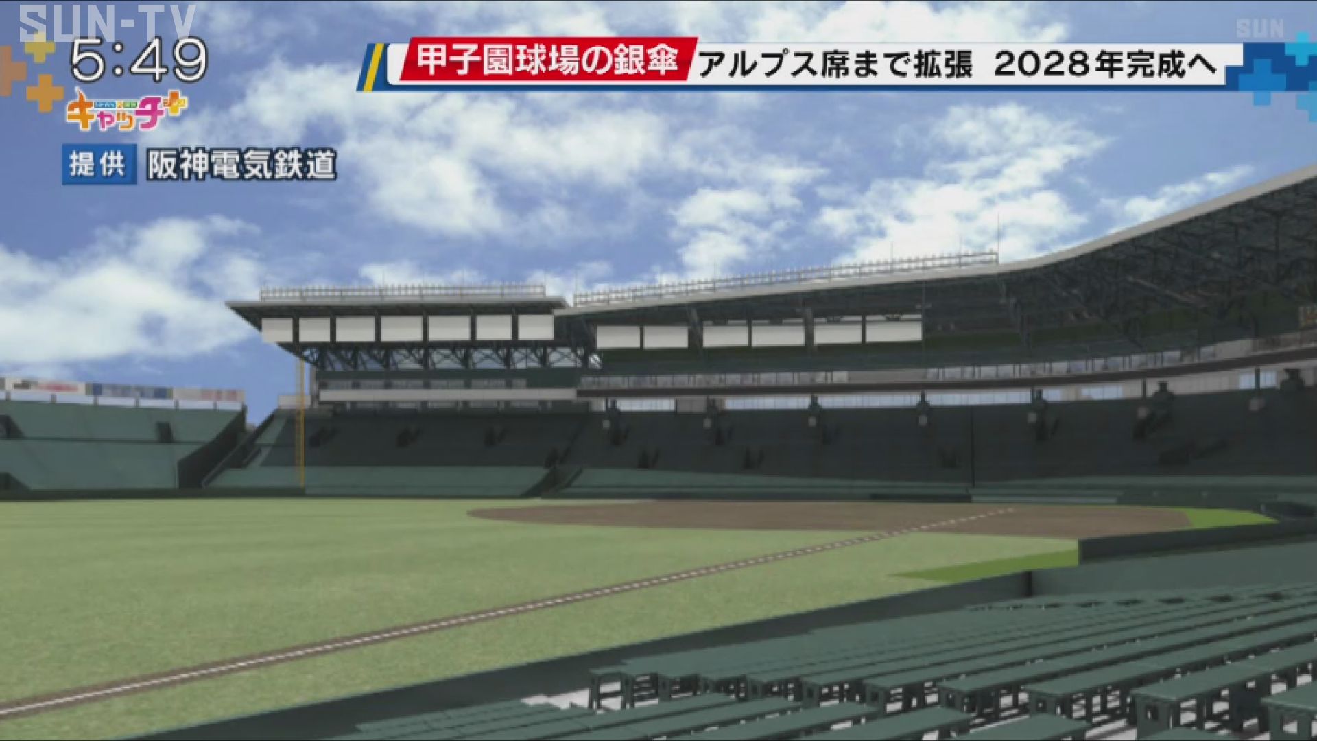 この計画は阪神電鉄が明らかにしたもので、甲子園球場のシンボルで内野席を覆う大屋根「銀傘」を一、三塁側のアルプス席まで拡張することで、観戦時の熱中症対策などを行います。