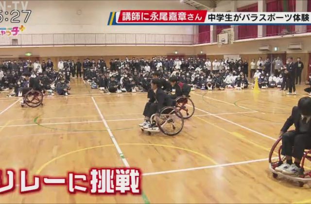 特別授業「あすチャレ!スクール」は、パラスポーツを通じて、共生社会への気づきや学びの機会にしてもらおうと、「日本財団パラスポーツサポートセンター」が主催し、全国で実施しているもので、8月5日は西宮市の体育館に夏休み中の児童約50人が集まりました。