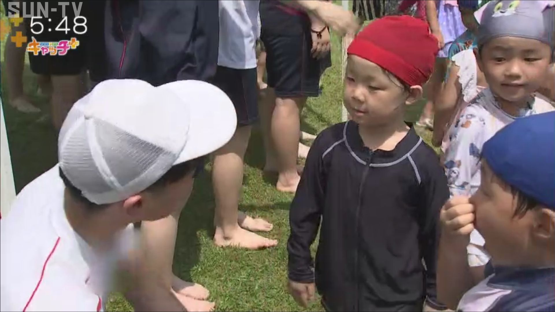 生徒たちは水着に着替えた園児たちとペットボトルや水鉄砲を使って水遊びをしたり、シャボン玉で遊んだりするなどびしょびしょに濡れながら楽しく遊んでいました。